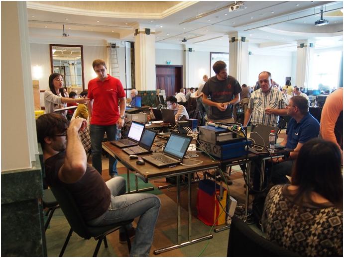 本次大會(huì)測(cè)試項(xiàng)目總體分為SV、GOOSE/client/server、PTP、HSR/PRP、SCL等5個(gè)小組,近600平米的大廳座無虛席。UCA協(xié)會(huì)作為組織單位,做了充分的準(zhǔn)備工作,細(xì)致到每一個(gè)交換機(jī)、每一個(gè)插座、每一臺(tái)設(shè)備的功耗,保證了整個(gè)互操作活動(dòng)能夠順利啟動(dòng)。